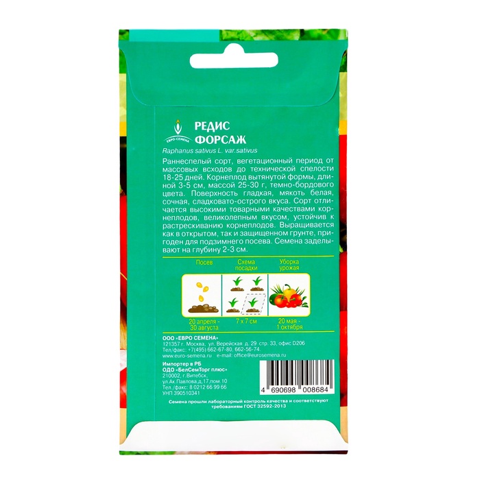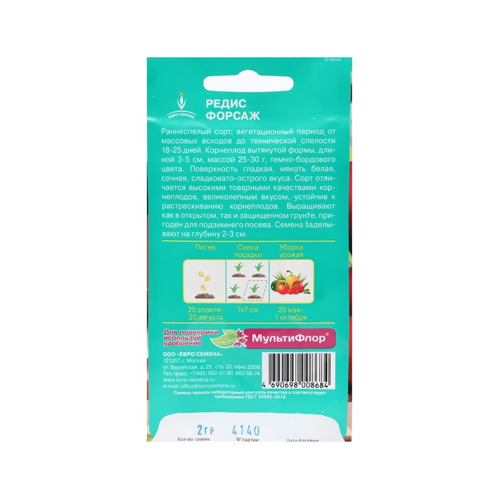 Как высаживать? Редис засевают в период с 20 апреля по 25 августа на глубину 2 см, придерживаясь схемы 7 × 7 см. Урожай убирают с 25 мая по 1 октября по мере созревания плодов.
