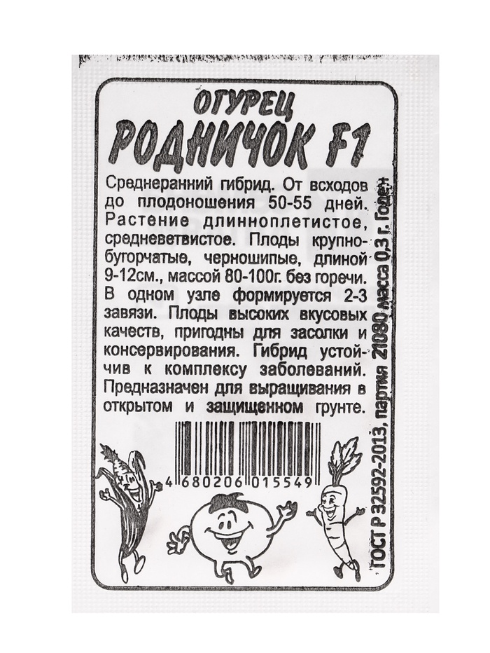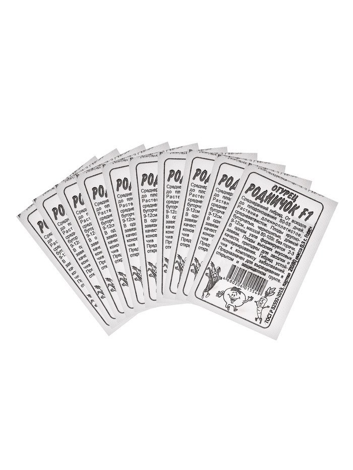 Особенности выращивания: «Родничок» требует формирования в 1 стебель и регулярного сбора плодов. Лучшие результаты показывает на шпалере при умеренном поливе теплой водой. Набор из 10 семян — оптимальный вариант для пробного выращивания или небольшой огуречной грядки.