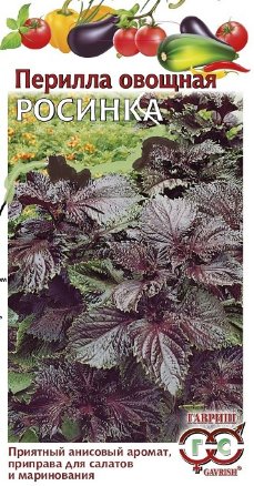 Новая пряно-вкусовая культура. Благодаря высокой декоративности может выращиваться в качестве бордюрного растения. Сорт скороспелый, холодостойкий, с длительным периодом вегетации – 135-150 дней. Растение высокое – 120-140 см, стебель прямостоячий, ветвящийся, четырехгранный. Выращивается в открытом грунте и в теплицах, через рассаду или прямым посевом. Масса одного растения 200-500 г. Урожайность листьев в зависимости от условий выращивания 0,5-5,0 кг/м2. Рекомендуется для использования зеленых молодых листьев в свежем виде (салатах, мясных и рыбных блюдах), в фазе технической спелости листья солят и маринуют, а также используют в виде порошка из сухих листьев как ароматической добавки к мясным и овощным блюдам. Зелень периллы сочная, нежная с освежающим вкусом и необычным мягким ароматом, где присутствуют тона карамели, цветков аниса и совсем легкие перечные тона.