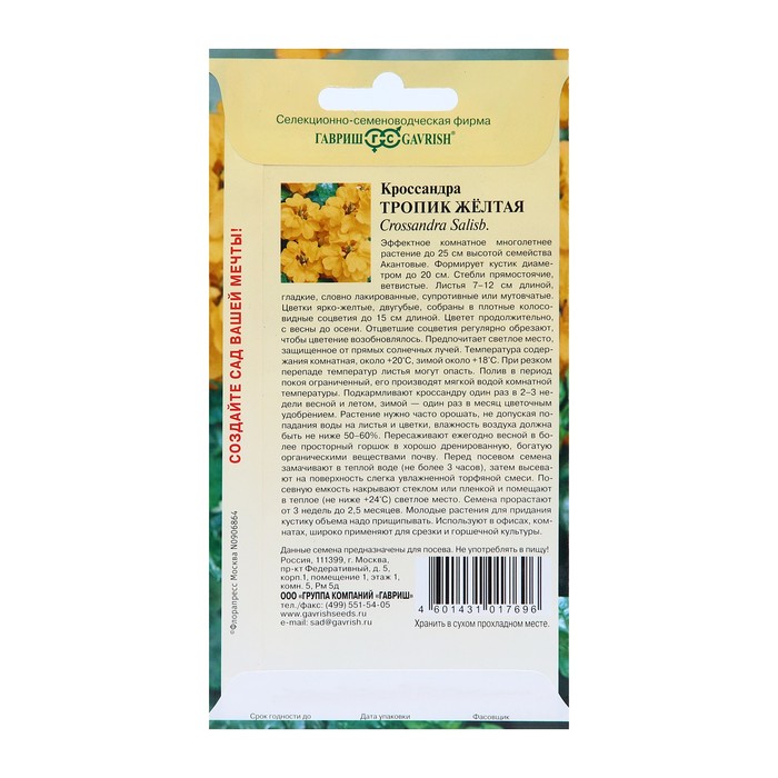 Предпочитает светлое место, защищенное от прямых солнечных лучей. Температура содержания комнатная, около 20о С, зимой около 18о С. При резком перепаде температур листья могут опасть. Полив в период покоя ограниченный, его производят мягкой водой комнатной температуры. Подкармливают кроссандру один раз в 2-3 недели весной и летом, зимой — один раз в месяц цветочным удобрением. Растение нужно часто орошать, не допуская попадания воды на листья и цветки, влажность воздуха должна быть не ниже 50 — 60 %. Пересаживают ежегодно весной в более просторный горшок в хорошо дренированную, богатую органическими веществами почву.