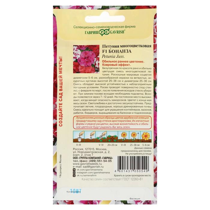 Семена Цветов Петуния «Бонанза», F1, махровая, 7 драже, «Гавриш»