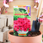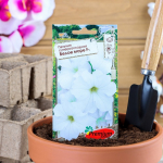 Уникальная серия сортов петуний с огромными (до 16 см) бахромчатыми цветками. Кустики мощные, компактные, густооблиственные, высотой до 50 см. Цветет обильно с мая до заморозков. Цветки белого цвета с эффектным акцентом — темным жилкованием в виде ажурной сеточки. Посев проводят с февраля по март. При зимнем посеве всходам необходима подсветка. Всходы появляются через 7-12 дней. На постоянное место высаживают, когда минует опасность заморозков. Светолюбива и достаточно засухоустойчива. Предпочитает легкие, плодородные, хорошо дренированные почвы. Украсит клумбы, вазоны, балконные ящики, подоконники, низкорослые бордюры.