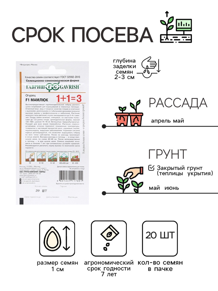 Сроки созревания: Средний (от 48 до 60 дней)