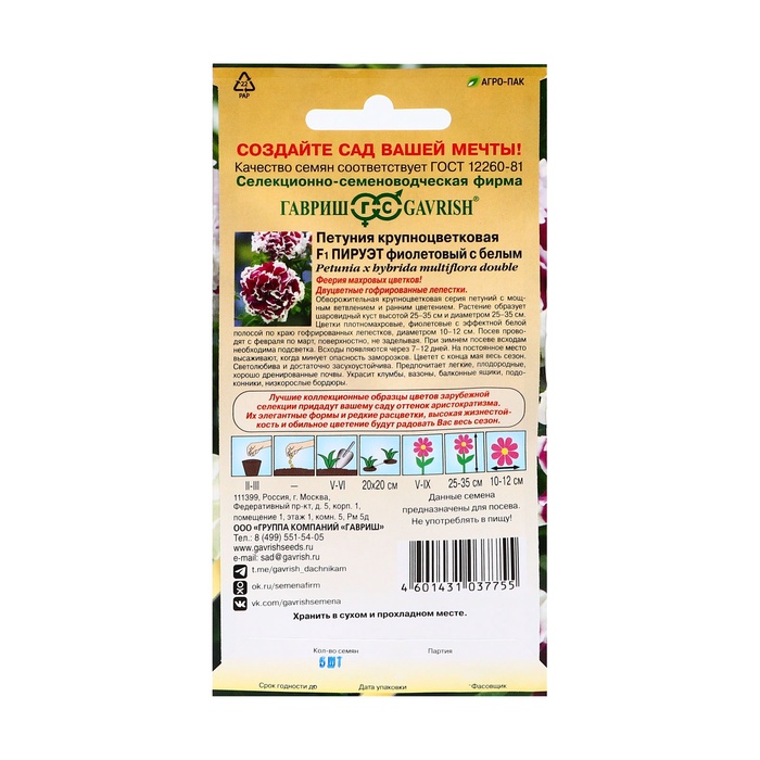 Семена Петуния «Пируэт», фиолетовый с белым, 5., «Гавриш»