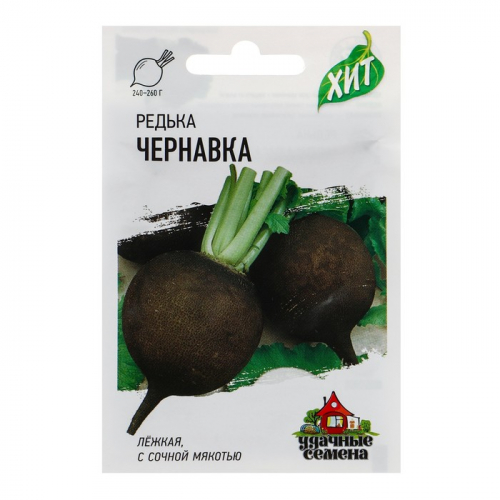 Позднеспелый (90-100 дней от всходов до технической спелости) сорт. Корнеплод округлый, с округлым основанием, черный, длиной 10 см, диаметром 8-10 см, головка большая, плоская, черная, мякоть белая, нежная, очень сочная, корнеплод погружен в почву на 1/8 длины. Масса 240-260 г. Высевают в июле. Урожайность 3,20-3,50 кг/м2. Рекомендуется для свежего потребления и хранения. Ценность сорта: высокая урожайность, выравненность корнеплодов, хорошая лежкость, устойчивость к низким температурам. Схема посадки 10x15 см.