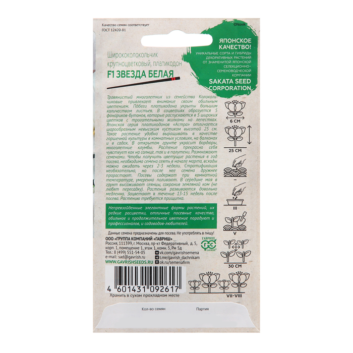 Семена Ширококолокольчик "Звезда белая", ц/п, F1, 4.