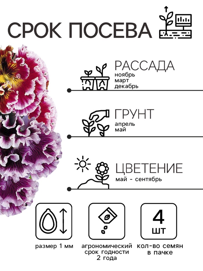 Семена Виола "Махровое кружево", ц/п, триколор, F1, 4
