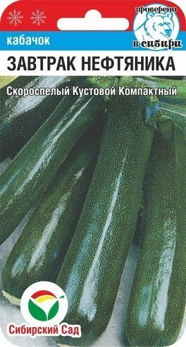 Раннеспелый (от всходов до получения урожая 40-42 дня) сорт. Растение мощное, кустистое, низкорослое. Плоды цилиндрические, длинные, светло-салатовые, с глянцевой блестящей кожицей, мякоть белая, плотная, массой 3-3,5 кг. Вкусовые качества отличные. Урожайность 8-9 кг/м2. Ценность сорта: устойчивость к болезням, обильное плодоношение, хорошая завязываемость как в жаркую, так и в холодную, дождливую погоду, выравненность и высокая товарность плодов, пригодность к хранению. Рекомендуется для домашней кулинарии.