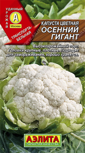 Ультраранний (45-55 дней после пересадки) сорт. Розетка листьев вертикальная. Головка белоснежная, плотная, округло-плоской формы, с нежной текстурой, среднебугристая, частично покрыта листьями, массой до 1,5 кг. Сорт ценится за высокую урожайность, отличное качество и великолепный вкус головок. Рекомендован для переработки и заморозки. Урожайность 2,0 кг/м2.
