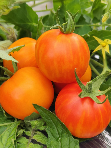 Ранний, инд., высокорослый сорт. Плоды округлые, массой до 200 грамм, с великолепным и редким окрасом бронзово- охристого цвета. Плотная, сочная мякоть со сладким вкусом и ароматами цитрусовых.