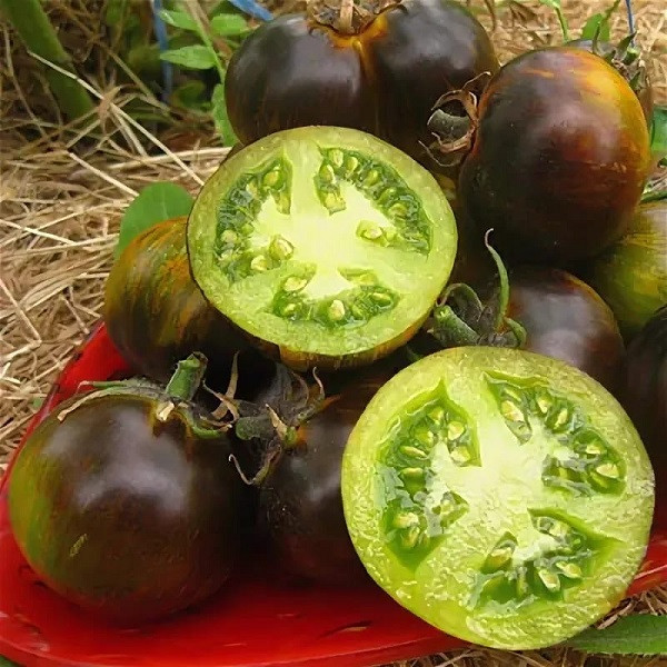 Среднерослый, среднеспелый сорт для грунта и теплицы. Требует пасынкования и подвязки к опоре. Плоды округлые, зеленые с желтыми полосами и антоциановыми разводами весом в среднем 50-60г. На вкус кисло- сладкие с фруктовыми нотками, спелость определяется по мягкости и желтому пятну у плодоножки.