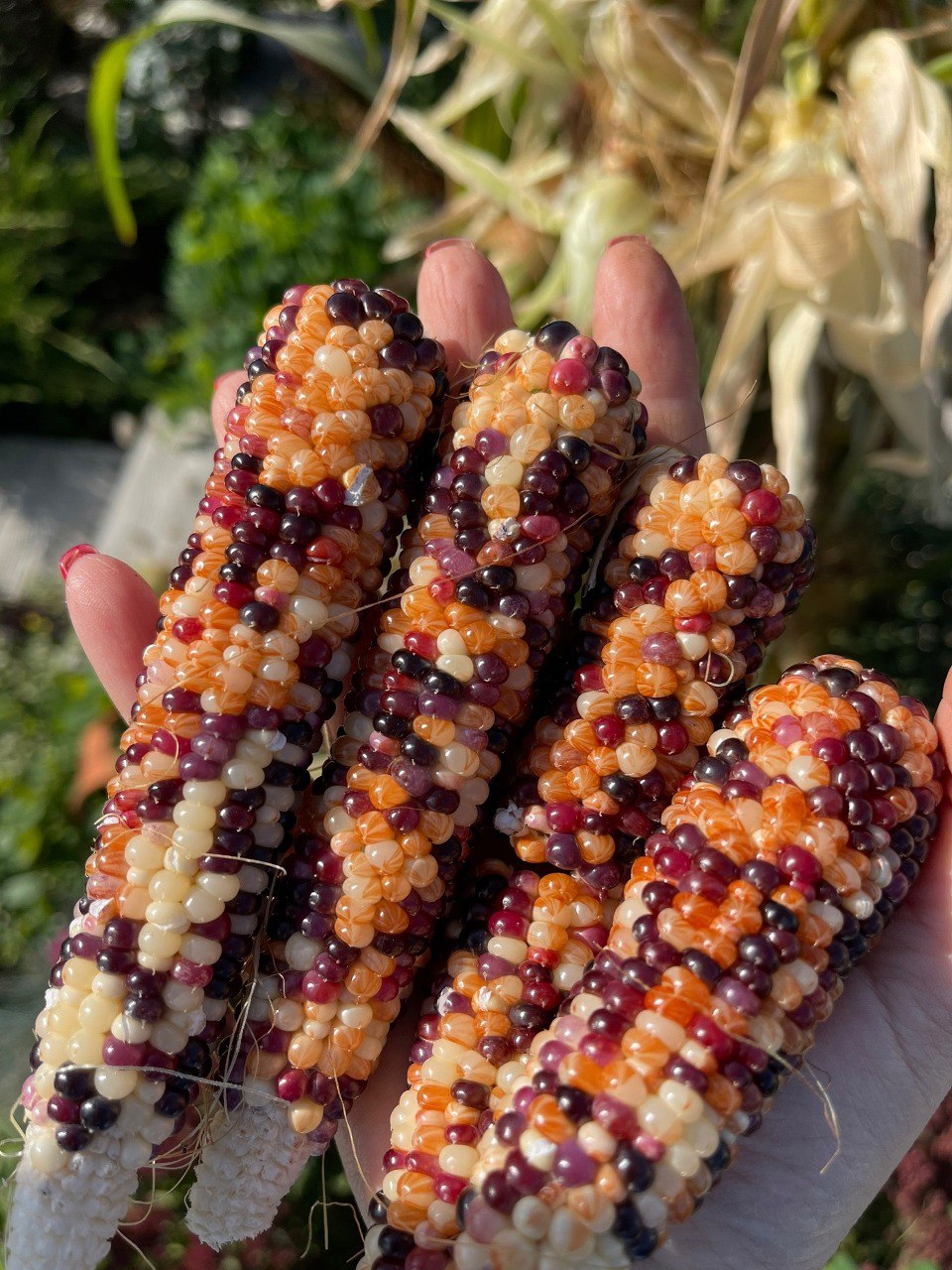 Отличная находка для творчества. Отличное растение для дизайнерских работ. Растения крупные, высотой до 2 м с широкими светло-зелеными листьями. Отличное решение для высадки у изгородей. Формирует початки с необычными цветными зернами. Каждый початок уникален по сочетанию расцветок. Созревшие и высушенные початки используют в зимних композициях. Цветные початки хороши как самостоятельный объект и в сочетании с различными сухоцветами.