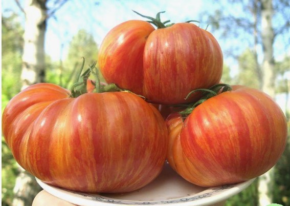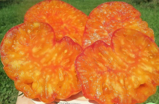 Замечательный, высокорослый, урожайный сорт томата. Плоды красивые, крупные, красно-оранжевого цвета со штриховкой. Очень вкусные, сладкие, сочно-мясистые.