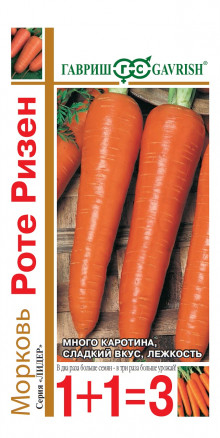 Среднеспелый, высокоурожайный, пластичный сорт типа "Берликум". Рекомендован для употребления в свежем виде, длительного (7-8 месяцев) хранения. Крупный, сильный корнеплод длинной 18-20 см, не растрескивается и не ломается. Мякоть сочная, вкусная, с высоким содержанием сахара и каротина. Сорт дает высокие урожаи на любых типах почв.