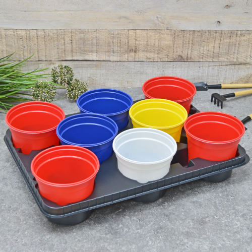 Набор для рассады: 8 круглых цветных горшков на поддоне