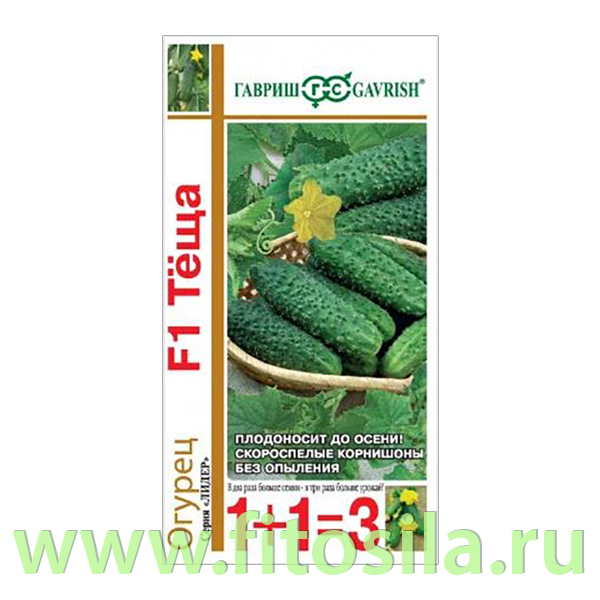 Огурец F1 Теща авторской селекции «Гавриш» стал очень популярным на отечественных огородах. Это объясняется высокими вкусовыми качествами, отличным товарным видом плодов, большая устойчивость к болезням, холоду и перепадам температуры. Зеленцы длиной 11-13 см, массой 100-120 г, бугорчатые, бурошипые, без горечи. В пазухе листа образуется до 3-4-х завязей. Ароматные плоды громко хрустят в летних салатах, а консервированные дары солнечного лета порадуют плотной мякотью и безупречной формой. Гибрид скороспелый (45-48 дней от всходов до плодоношения), партенокарпический, плавно отдает урожай весь сезон. Растение средневетвистое. Выращивают в открытом грунте и пленочных теплицах. Семена после уборки сохраняют всхожесть в течение 7 лет при оптимальных условиях хранения. Рекомендуется увеличить норму высева по истечение срока годности.