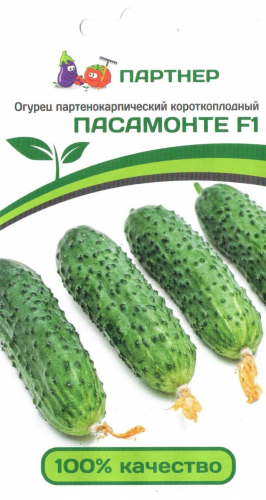 Гибрид Пасамонте среднеспелый. От всходов до начала плодоношения 43-45 дней. Плод генетически без горечи, цилиндрический, длиной 6-9 см, крупнобугорчатый, белошипый, зеленый с продольными полосами средней длины и средневыраженной пятнистостью, не перерастает. В одном узле формирует 2-3 плода. Вкусовые качества свежих и консервированных плодов отличные. Пригоден для засола и консервирования.Пасамонте F1 устойчив к кладоспориозу и мучнистой росе, относительно устойчив к вирусу огуречной мозаики-1 . Урожайность 12-15 кг/кв.м.