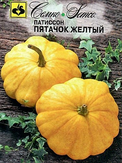 Среднеспелый сорт патиссонов. От всходов до хозяйственной годности 75-80 дней. Растение кустовое, лист среднего размера. На растении формируется до 14 плодов. Плоды патиссона в форме диска насыщенно-жёлтой окраски, массой свыше 300 г. Мякоть кремовая, плотная. Патиссон Пятачок Жёлтый устойчив к мучнистой росе. Пригоден для хранения. Используется для потребления в свежем виде (молодые плоды), соления, маринования, тушения. Схема посадки 100х70 см. Урожайность 3-4 кг/м.