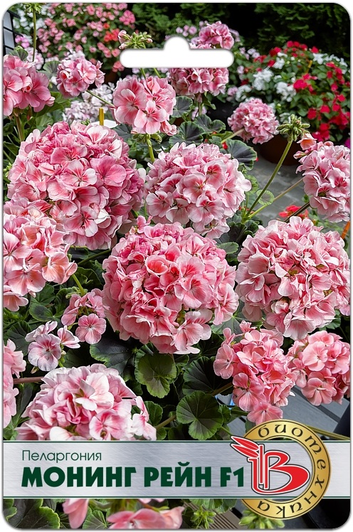 Профессиональная пеларгония с необычной расцветкой. Растения имеют мощный рост, очень плотные и крепкие, высотой 30-40 см, цветы собраны в плотные шаровидные соцветия диаметром до 15 см на коротких цветоносах, что делает их устойчивыми к дождю и ветру. Цветение раннее – цветоносы закладываются еще на стадии рассады. Соцветия очень крупные, на коротких цветоносах. Цветение очень продолжительное. Прекрасное решение как для вазонов, так и для клумбы.