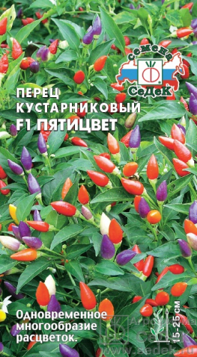 Раннеспелый (85-95 дней) гибрид для открытого грунта, пленочных укрытий и для выращивания в комнатных условиях. Растение компактное, высотой 15-25 см. Плоды мелкие, конические, ярко окрашенные, с пучковым расположением (по 5-6 штук). На одном растении одновременно формируется до 30 ярких плодов от белого, желтого, оранжевого, фиолетового до красного цвета. Вкус острый. Ценность гибрида: способность развиваться и формировать урожай в условиях пониженной освещенности, продолжительный период плодоношения. Рекомендуется для круглогодичного выращивания в комнатных условиях, зимних садах, оформления переднего плана дизайнерских композиций. Используется для сушки, консервирования, других кулинарных переработок.