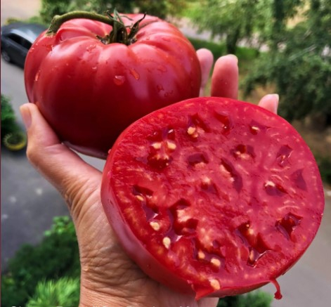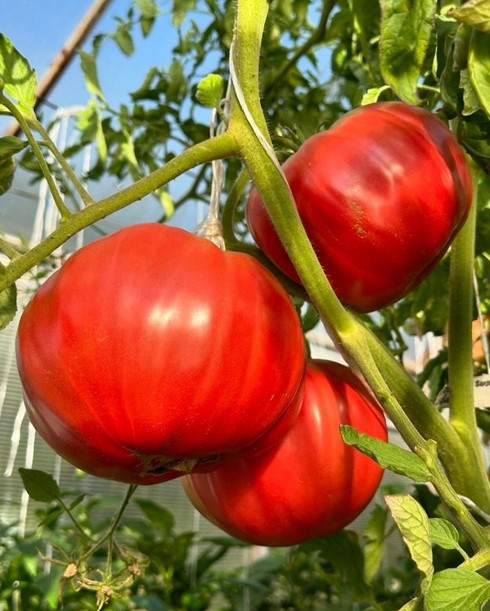 Высокорослый, продуктивный сорт с высокой энергией роста. Одновременно на кусте созревает большое количество томатов весом 800-1000 грамм, в одной кисти до 3 таких плодов. Плотная и маслянистая мякоть превосходного, насыщенного вкуса. Шедевр для любителей крупноплодных томатов.