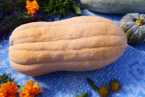 Старинный сорт мускатной тыквы-баттерната из Италии с вытянутыми плодами бежевого цвета средней массой 2,5-5кг (в потенциале до 10 кг).