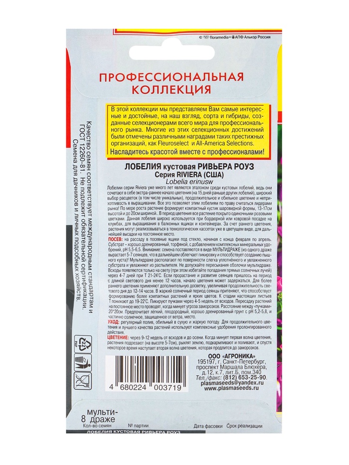 Лобелия «Ривьера Роуз» обеспечивает очень раннее продолжительное и обильное цветение розовыми цветами. По мере роста она формирует компактный куст шаровидной формы. Подходит для бордюрной или ковровой посадки на клумбах, а также для балконных ящиков и контейнеров.