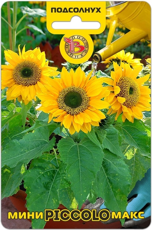 Настоящий карликовый гибрид подсолнуха. Специальная селекция для выращивания в горшках небольшого объема. Растение компактное, с очень короткими междоузлиями на толстом стебле высотой 20-25 см. Характерная особенность гибрида – почти одновременное зацветание боковых второстепенных побегов вместе с основным. Получается очень насыщенное и богатое цветение. Диаметр соцветия 15-16 см. Лепестки периферийных цветков ярко-желтые, центр светлый, золотисто-шоколадный.