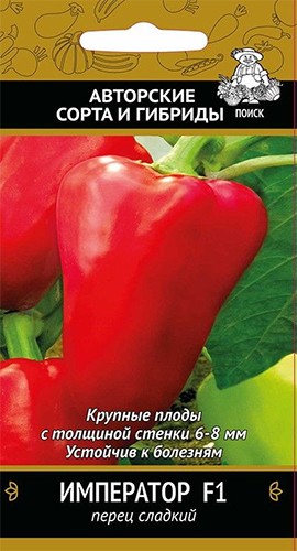 Стабильный высокий урожай. Среднеранний гибрид для открытого грунта и плёночных теплиц. Период от высадки рассады до созревания плодов 65-70 дней. Растение полураскидистое, компактное, средней высоты. Плод пониклый, конусовидный, глянцевый, окраска в технической спелости зеленая, в биологической - красная. Число гнезд 2-3. Масса плода 130-150 г, толщина стенки 6-8 мм. Вкус свежих плодов отличный. Универсальное использование.