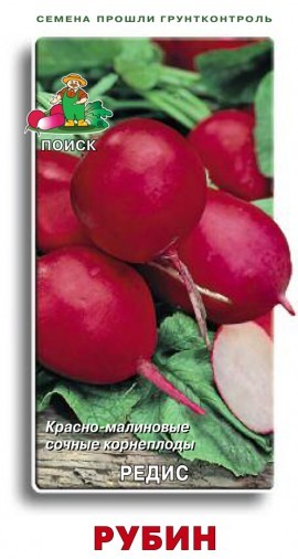 Раннеспелый (от всходов до технической спелости 25-30 дней) сорт для выращивания в открытом и защищенном грунте. Корнеплоды округлые, красные, массой 15-30 г. Мякоть белая и бело-розовая, плотная, нежная, сочная, слабоострая, имеет высокие вкусовые качества. Ценность сорта: дружное формирование урожая и выравненность корнеплодов. Рекомендуется для употребления в свежем виде и использования в различных салатах.