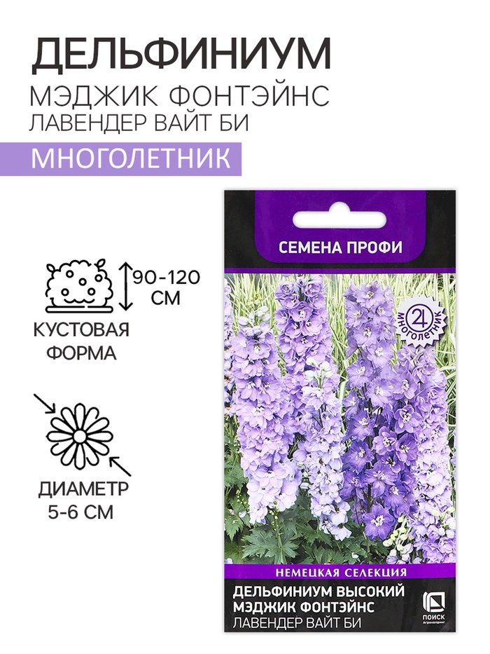 Семена цветов Дельфиниум высокий "Мэджик Фонтэйнс Лавендер Вайт Би", 10шт