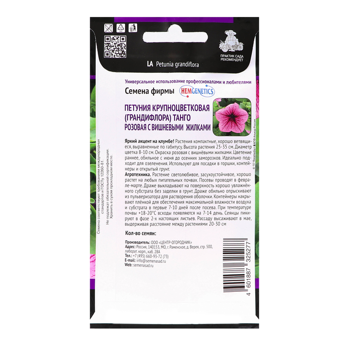 Яркий акцент на клумбе! Растения компактные, хорошо ветвящиеся, выравненные по габитусу. Высота растения – 25-35 см. Диаметр цветка 8-10 см. Окраска - розовая с вишневыми жилками. Цветение раннее, обильное с июня до осенних заморозков. Идеально подходит для озеленения. Используют для посадки в горшки, контейнеры и открытый грунт.Агротехника. Растение светолюбивое, засухоустойчивое, хорошо растет на любых питательных почвогрунтах. Посев семян на рассаду проводят в феврале-марте. Семена слегка вдавливают в почву, землей не присыпают. Посадочную емкость накрывают стеклом и ставят в освещенное место. При температуре почвы +18-20°C всходы появляются на 14-20 день. Сеянцы пикируют в фазе 2-х настоящих листьев. Рассаду высаживают в открытый грунт после окончания весенних заморозков.Семена соответствуют требованиям международных стандартов и ГОСТу РФ 12260-81