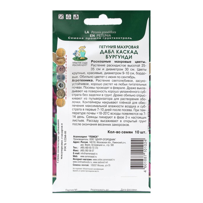 Растение раскидистое высотой 25 - 35 см и диаметром 30 см. Цветы крупные, красивые, диаметром 9 - 10 см, бордовые. Обильно цветет с июня по сентябрь. Растение светолюбивое, засухоустойчивое, хорошо растет на любых питательных почвах. Посевы проводят в феврале. Драже выкладывают на поверхность хорошо увлажненного субстрата без заделки в грунт. Драже обильно опрыскивают из пульверизатора для растворения оболочки. Контейнеры покрывают пленкой для обеспечения максимальной влажности воздуха и субстрата в первые 7 - 10 дней после посева. При температуре почвы +18 - 20 градусов всходы появляются на 7 - 14 день. Сеянцы пикируют в фазе 2 - х настоящих листьев. Рассаду высаживают в открытый грунт после окочания весенних заморозков.