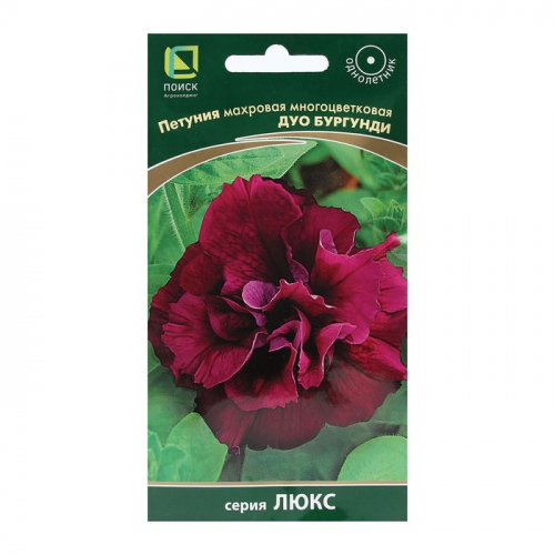 Семена Петуния махровая многоцветковая Дуо бургунди. Многочисленные махровые шарики цветов на раскидистых кустиках. Растения высотой 25-35 см и диаметром около 30 см. Цветы махровые бордово-сиреневые. Обильно цветет с июня по сентябрь. Растение светолюбивое, засухоустойчивое, хорошо растет на любых питательных почвогрунтах. Посев семян на рассаду проводят в мае - июне. Семена слегка вдавливают в почву, землей не присыпают. Посадочную емкость накрывают стеклом и ставят в освещенное место. Всходы появляются на 14-20 день. Сеянцы пикируют в фазе 2-х настоящих листьев. Рассаду высаживают в открытый грунт после окончания весенних заморозков.