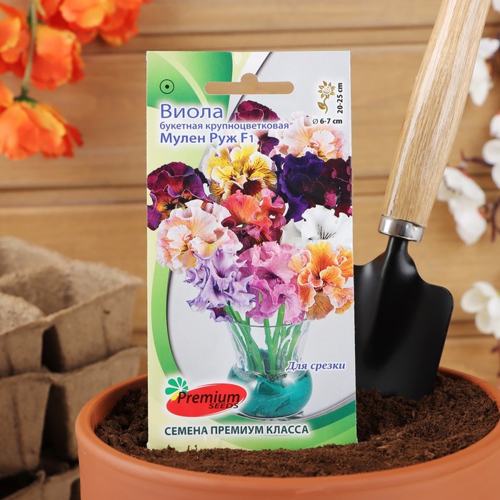 Восхитительная, крупноцветковая гибридная виола с бахромчатыми и гофрированными лепестками, высотой 20-25см. Цветки яркие, диаметром 6-7 см, завораживают своей красотой. Длинный цветочный стебель делает этот гибрид великолепным срезочным цветком. Растения хорошо переносят пересадку в цветущем состоянии. Широко используется для срезки и создания букетов, а также разноцветных клумб, рабаток.