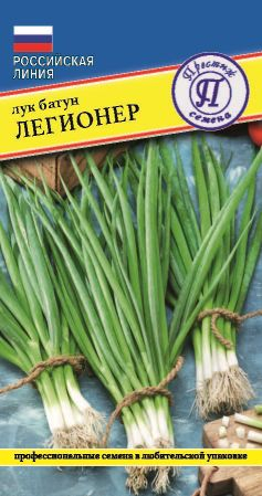 Лук батун Легионер - раннеспелый салатный сорт. Срок созревания 30-33 дня. Растение средней высоты, со средней степенью ветвления. Листья прямостоячие, зеленые со слабым восковым налетом, сочные, с высоким содержанием сахара и сухого вещества, долго не грубеют и сохраняют хозяйственную годность. Вкус полуострый, приятный. Ценность сорта: высокая урожайность, нежный вкус, зимостойкость, повышенная устойчивость к болезням. Возделывается в однолетней и многолетней культуре. При однолетней культуре проводят ранневесенний посев и одноразовую уборку растений в конце сезона. При многолетней культуре посев проводят в рядки гнездами по 2-3 семени на глубину 0,5-1,5 см, через каждые 20 см. За лето можно проводить 3-4 срезки зеленого пера. На одном месте выращивают 4-6 лет. Товарная урожайность за сезон 4,2-4,5 кг/кв.м.