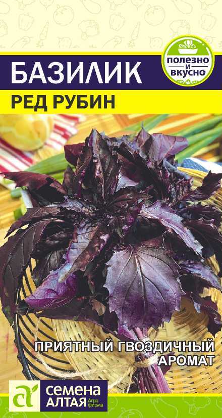 Среднеспелый сорт для выращивания в защищенном грунте, под временными пленочными укрытиями, в открытом грунте, а также в комнатных условиях как горшечная культура. Растение компактное, высотой 30-50 см, стебель темно-фиолетовый. Лист среднего размера, удлиненно-яйцевидной формы, среднепузырчатый, фиолетово-красного цвета. Масса одного растения 180-250 г. Аромат сильный со специфическим "гвоздичным" привкусом. Используется как пряно-вкусовая приправа в свежем, сушеном, замороженном виде и для маринования. консервировании. Базилик улучшает пищеварение, возбуждает аппетит, обладает противовоспалительным действием, широко применяется в медицине при простудных заболеваниях верхних дыхательных путей.