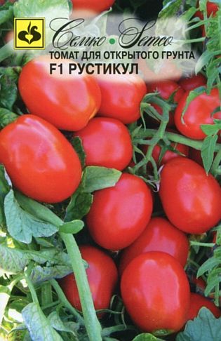 Томат Рустикул F1 - ранний, детерминантный гибрид томата для открытого грунта. От всходов до созревания 95-97 дней. Растение среднерослое, компактное с короткими междоузлиями и хорошей облиственностью. Плоды округло-кубовидные, тёмно-красные, плотные, массой 65-70 граммов. Содержание сухого вещества 5,8-6,2%. Вкусовые качества помидоров отличные. Томат Рустикул F1 устойчив к следующим заболеваниям томата: вертициллёзу (V), фузариозу (Fol 0-1), бактериозу (Pst), вирусу бронзовости (TSWV). Плоды этого томата идеально подходят для заготовки томатных кубиков и производства сока. Урожайность 12-14 кг/м.