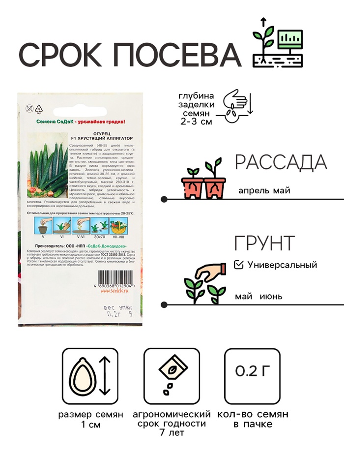Среднеранний (48-55 дней) пчелоопыляемый гибрид для открытого (в теплом климате) и защищенного грунта. Растение сильнорослое, средневетвистое, смешанного типа цветения. В пазухе листа формируется одна завязь. Зеленец удлиненно-цилиндрический, длиной 30-35 см, с длинной шейкой, темно-зеленый, крупно и часто бугорчатый, массой 280-310 г, отличного вкуса, сладкий и ароматный. Ценность гибрида: устойчивость к мучнистой росе, длительное и обильное плодоношение, отличные вкусовые качества. Рекомендуется для употребления в свежем виде и консервирования нарезанными дольками.