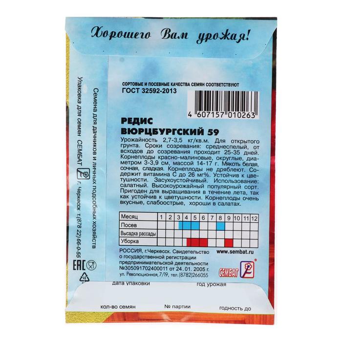 Предпочитает солнечные, хорошо увлажненные участки с легкими почвами. Под выращивание редиса отводят рыхлые, плодородные, супесчаные или легкосуглинистые почвы. На бедных, тяжелых и кислых почвах хороший урожай высокого качества не вырастает. Редис требователен к свету, в тени дает длинную ботву и маленький корнеплод. Для получения максимального урожая редиса необходимо строгое соблюдение севооборота - не сажать его после крестоцветных. Возможны смешанные посевы редиса с морковью и луком. Посев проводят с начала апреля до середины августа.