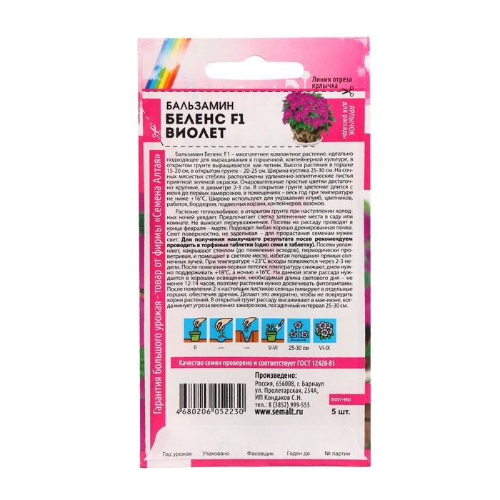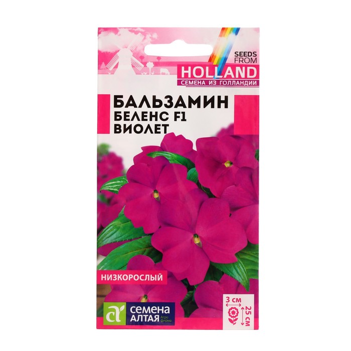 Бальзамин Беленс F1 - однолетнее компактное растение, идеально подходящее для выращивания в горшечной, контейнерной и бордюрной культуре. Высота растения в горшке 15-20 см, в открытом грунте – 20-25 см. Ширина кустика 25-30 см. На сочных мясистых стеблях расположены удлиненно-эллиптические листья приятной зеленой окраски. Очаровательные простые цветки достаточно крупные, в диаметре 2-3 см. В открытом грунте цветение длится с июня до первых заморозков, в помещениях - весь год при температуре не ниже +16°С. Широко используют для украшения клумб, цветников, рабаток, бордюр, подвесных корзин, контейнеров, вазонов.
