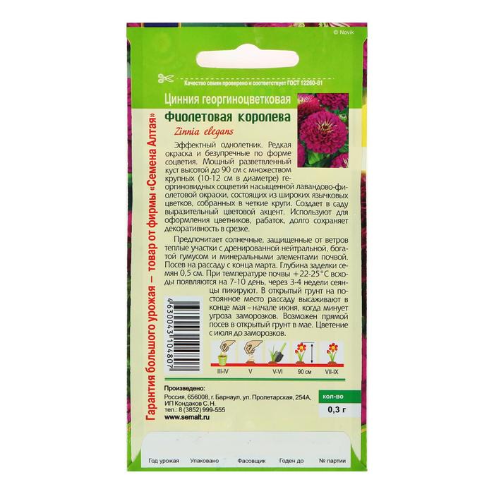 Эффектный однолетник. Редкая окраска и безупречные по форме соцветия. Мощный разветвленный куст высотой до 90 см, с множеством крупных (10-12 см в диаметре) георгиновидных соцветий насыщенной лавандово-фиолетовой окраски, состоящих из широких язычковых цветков, собранных в четкие круги. Создает в саду выразительный цветовой акцент. Используется для оформления цветников, рабаток, долго сохраняет декоративность в срезке. Предпочитает солнечные, защищенные от ветров теплые участки с дренированной нейтральной, богатой гумусом и минеральными элементами почвой.