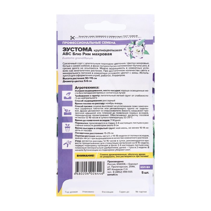 Эустома, лизиантус, «ирландская роза» — вот неполный перечень названий этого прекрасного однолетника, который в домашних условиях выращивается как многолетник. Полураспустившиеся цветки похожи на бутоны роз. Стебли высотой до 115 см с крупными махровыми белыми цветками с синей каймой по краям, диаметром до 6 см. Займет достойное место среди Ваших комнатных растений, также ее широко используют для оформления клумб, рабаток, бордюров и для получения первоклассной срезки. Предпочитает солнечные места, требуются еженедельные подкормки удобрениями, обильный полив и частое опрыскивание.