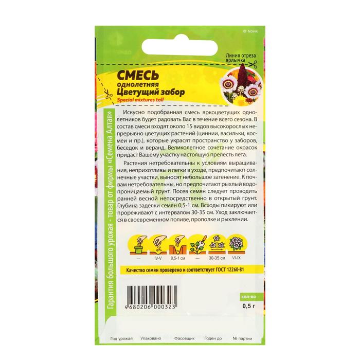 Искусно подобранная смесь яркоцветущих однолетников будет радовать Вас в течение всего сезона. В состав смеси входят около 15 видов высокорослых непрерывно цветущих растений (циннии, васильки, космеи и пр.), которые украсят пространство у заборов, беседок и веранд. Великолепное сочетание окрасок придаст Вашему участку настоящую прелесть лета. Растения предпочитают солнечные участки, но спокойно могут расти и в полутени. К почвам нетребовательны, но предпочитают рыхлый, водопроницаемый грунт. Посев семян следует проводить ранней весной непосредственно в открытый грунт. Уход заключается в своевременном поливе, прополке и рыхлении.