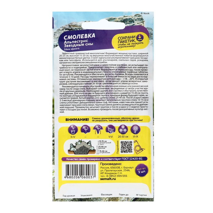 Смолевка Альпестрис — ваш надёжный помощник в создании живописного, уютного сада, полного белоснежных цветов, которые будут радовать взгляд весь летний сезон. Эти семена дарят вам возможность создать идеальный уголок природы у себя дома.