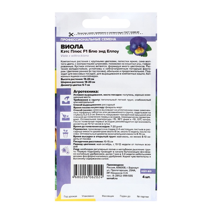 Этот набор семян станет отличным выбором как для начинающего садовода, так и для опытного цветовода. Семена виолы, представленные в комплектации «Кэтс Плюс» с оттенками синего и жёлтого, помогут создать яркий и живописный цветник.