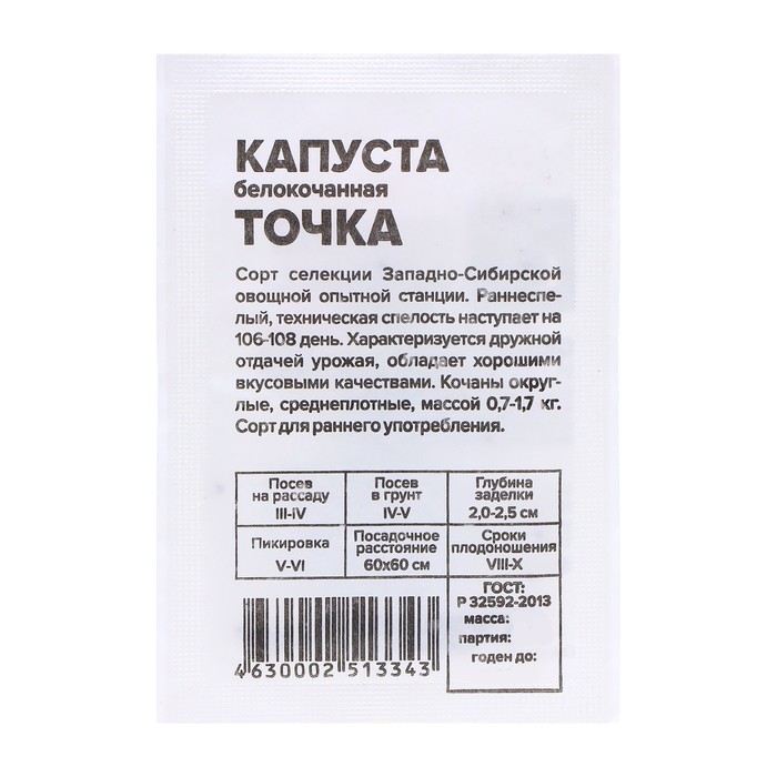 Сорт селекции Западно-Сибирской овощной опытной станции. Раннеспелый, техническая спелость наступает на 106-108 день. Характеризуется дружной отдачей урожая, обладает хорошими вкусовыми качествами. Кочаны округлые, среднеплотные, массой 0,7-1,7 кг. Сорт для раннего употребления.