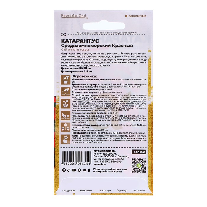 Семена Катарантус «Средиземноморский Красный», 5., «Семена Алтая»
