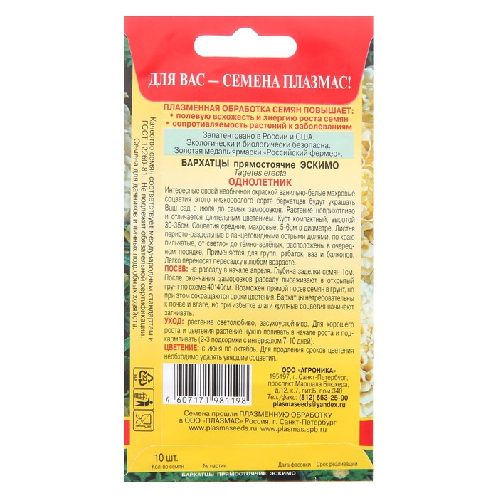 Семена Бархатцы низкорослые "Эскимо", 10 шт