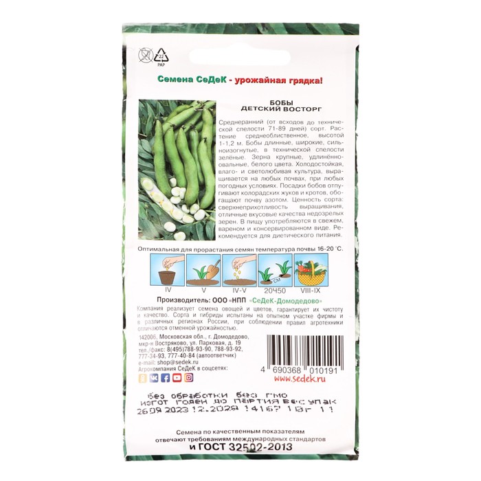 Семена бобы «Детский восторг», 10 г